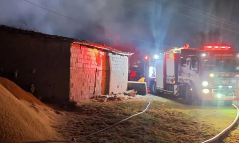 Depósito de arroz pega fogo durante a madrugada deste domingo (28), em Sousa
